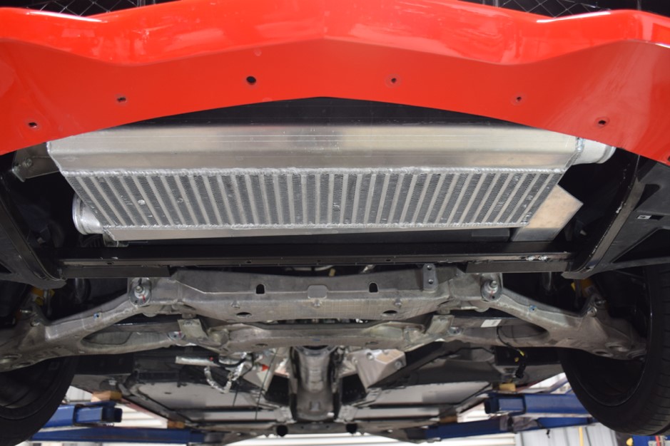 The supercharger install is very straightforward and can be performed at home with basic mechanical skills and tools. Once finished, everything will fit under the stock hood and all covers, including the radiator to hood heat extractor will fit back on the vehicle. The car will need to be raised on jackstands or a lift for proper access to the underside of the vehicle.